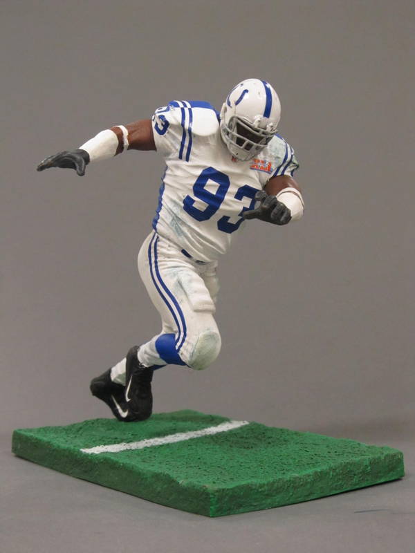 Dwiight Freeney 3, Indianapolis Colts. 50% Blue jersey, 50% Super Bowl XLI jersey custom mcfarlane by www.playactioncustoms.com. 2012